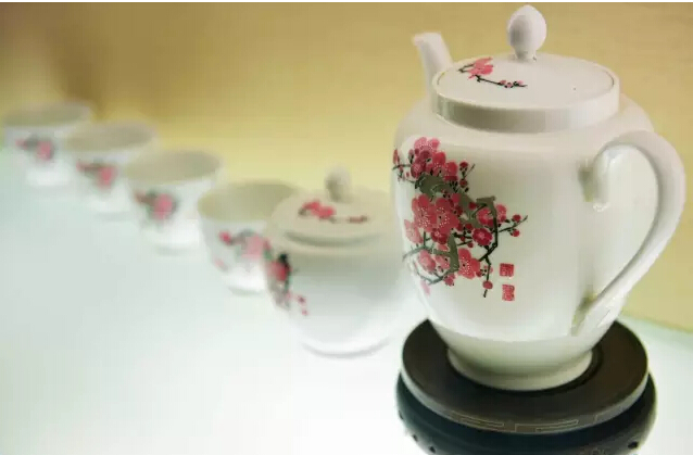 周總理右手旁的茶杯就是醴陵特制的青松“勝利杯”。