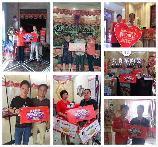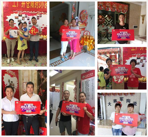 在活動(dòng)啟動(dòng)短短22天時(shí)間里,大將軍陶瓷總部與浙江、福建、江西、湖南、湖北、河南、廣東、廣西等九省將軍家人全力以赴,以戰(zhàn)狼精神,以將軍標(biāo)準(zhǔn)來(lái)參與戰(zhàn)斗,各大戰(zhàn)區(qū)業(yè)績(jī)飄紅,繼“京津冀”和“蘇皖滬”省級(jí)聯(lián)動(dòng)后,再創(chuàng)佳績(jī)!