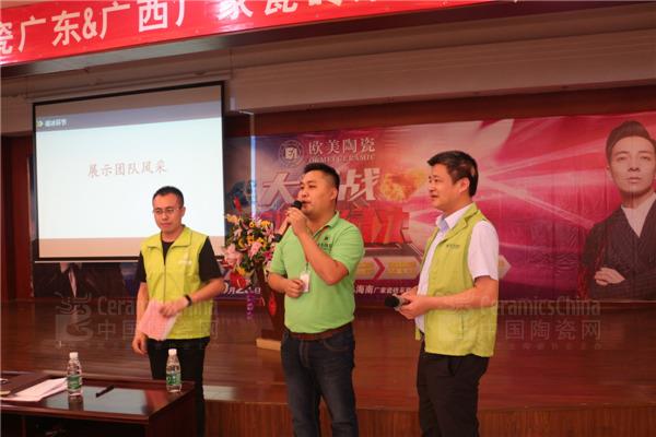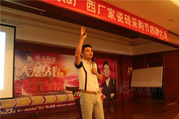 歐美陶瓷三省聯(lián)動(dòng)瓷磚采購(gòu)盛會(huì)是歐美品牌營(yíng)銷規(guī)劃的戰(zhàn)略延續(xù),對(duì)品牌未來(lái)的營(yíng)銷戰(zhàn)略部署具有指導(dǎo)性、示范性意義。當(dāng)天下午,歐美陶瓷副總經(jīng)理肖穎輝、歐美陶瓷廣東區(qū)大區(qū)經(jīng)理?xiàng)钪逻h(yuǎn)等一眾領(lǐng)導(dǎo)代表親臨啟動(dòng)大會(huì)現(xiàn)場(chǎng),為戰(zhàn)友們吶喊助威。