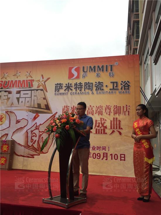 陽春薩米特陶瓷旗艦店總經(jīng)理何總的致辭中說道,今天榮耀開業(yè),離不開企業(yè)和品牌的支持和引導(dǎo),離不開眾多領(lǐng)導(dǎo)和各屆朋友的關(guān)懷和幫助,離不開廣大消費者的認(rèn)同和信賴。今后,我將專注于薩米特,把團(tuán)隊的精力都投入到品牌經(jīng)營建設(shè)上,盡全力伴隨薩米特品牌發(fā)展的步伐,再攀新的高峰,為建設(shè)美麗的陽春作出一份力。