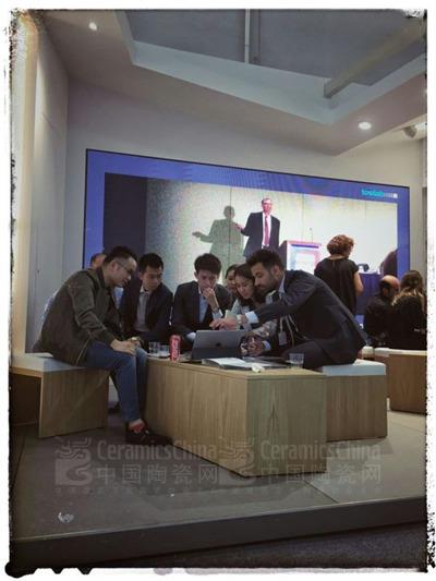 歐雅代表團在觀展期間,被西班牙PORCELANOSA(寶路莎)瓷磚其獨特的風格,產(chǎn)品品質(zhì)、工藝、展示設計所吸引,紛紛圍坐在一起聆聽其參展商的詳細介紹。