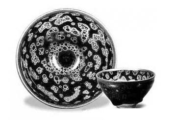可以說,從釉色到器型,建窯盞就是為宋代茶道而生的。也可以想象到當年最好的建窯盞在文人墨客,天子貴臣中會有多么高的地位。加上燒制中呈現(xiàn)出的罕見的油滴斑、兔毫斑、曜變等釉色花紋,更是成為一時瓷器中的極品。
