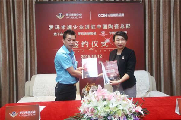 2016年10月12日上午11:08,羅瑪米斕企業(yè)進駐中國陶瓷總部簽約儀式在中國陶瓷劇場3樓貴賓室隆重舉行。羅瑪米斕企業(yè)是中盛陶瓷旗下的主力轉(zhuǎn)型品牌,其中包含了羅瑪米斕陶瓷和卡佩皇朝陶瓷兩個子品牌,企業(yè)一直秉承“創(chuàng)一流品質(zhì)、創(chuàng)一流服務(wù)、創(chuàng)一流品牌”的宗旨,并以“創(chuàng)新、品質(zhì)、服務(wù)”為企業(yè)發(fā)展導(dǎo)向,致力提升產(chǎn)品附加值和品牌影響力。