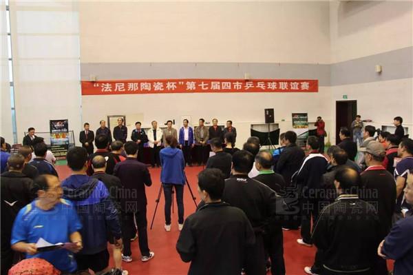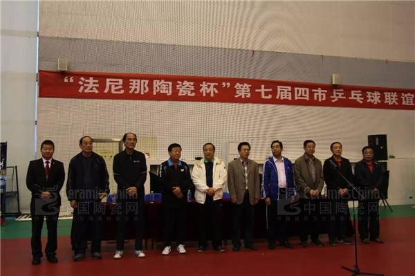 “法尼那陶瓷杯”第七屆四市乒乓球聯(lián)誼賽是一次較高水平比賽,四市地方政府和乒協(xié)領(lǐng)導(dǎo)高度重視,都派出了由當(dāng)?shù)卣、乒協(xié)領(lǐng)導(dǎo)為團(tuán)長的高規(guī)格代表團(tuán)。參加此次活動的主要領(lǐng)導(dǎo):淄博市政府特邀咨詢蘇勇;山東理工大學(xué)黨委書記呂傳毅;濱州市原副市長于志剛;德州市人大原主任蘭忠良;德州市政協(xié)主席翟長生;德州市人大原副主任王衛(wèi)東;臨沂市政協(xié)副主席錢迎偉;魯南技師學(xué)院黨組書記李玉洪;聊城市市政府咨詢李軍生、淄川區(qū)政協(xié)主席李涌、淄川區(qū)副區(qū)長郭慶、淄博成暢建筑陶瓷有限公司董事長張召等。