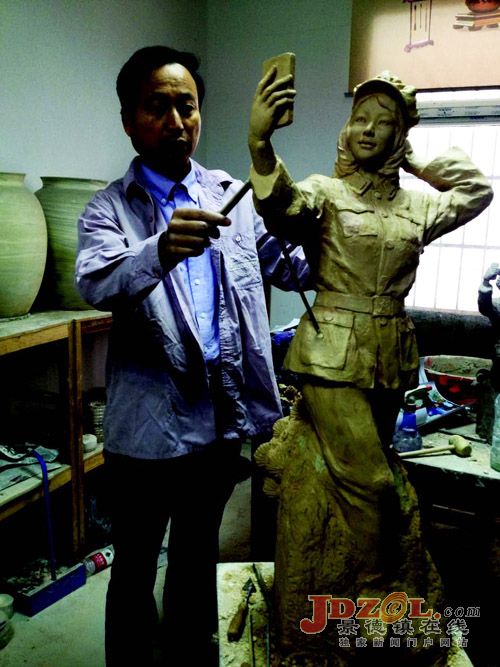 “我曾經(jīng)去過幾次井岡山,覺得那里的紅色文化旅游特別好。如今,年輕人該如何學(xué)習(xí)革命傳統(tǒng),怎樣去堅守革命信仰?心中有信仰,腳下有力量。穿紅軍裝、吃紅米飯、走長征路,學(xué)習(xí)我們先輩拋頭顱灑熱血,為社會主義事業(yè)而奮斗終身的精神。以前,我就想做這個體裁,它的寓意也是無窮的。”孫燕明說,創(chuàng)作井岡山革命歷史題材的大有人在,他考慮的則更多是體現(xiàn)現(xiàn)在井岡山的特色。雕塑是四維立體圖形,如何抓住它的典型形象來表現(xiàn)?就要采取帶點寫實的手法去做,拿著的手機(jī)代表現(xiàn)代的東西,衣服棱角明顯能給人一種新衣服穿上身的感覺。為了抓住這么精彩的一瞬間,孫燕明找來了很多的模特,拍了很多照片,才創(chuàng)作出這么生動的作品。