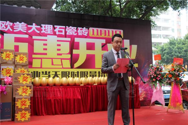 隨著觀眾席嘉賓逐漸入座,一段激情洋溢龍鼓舞震撼開場。首先,歐雅企業(yè)工程事業(yè)中心總經(jīng)理嬈良文先生發(fā)表開業(yè)講話,對到場嘉賓、業(yè)主朋友表示衷心的感謝,對佛山三水歐美陶瓷旗艦店寄予了厚望!他表示廠商一體,并肩作戰(zhàn),使得歐美陶瓷逐步發(fā)展成為實(shí)力雄厚、享譽(yù)內(nèi)外的陶瓷品牌。他衷心祝愿三水歐美陶瓷旗艦店駿業(yè)日新、宏圖大展!