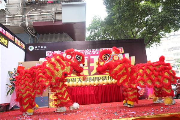 鑼鼓一響,黃金萬兩,獅子點(diǎn)睛,富貴繁榮。歐雅企業(yè)工程事業(yè)中心總經(jīng)理嬈良文、佛山三水歐美陶瓷旗艦店董事長潘秋萍在所有嘉賓的共同見證下共同為瑞獅點(diǎn)睛,隨后吉獅獻(xiàn)瑞采高青增添祥瑞好彩頭,引來觀眾陣陣喝彩,齊賀開業(yè)大吉,精彩的醒獅表演將當(dāng)天活動的氣氛推向高潮。