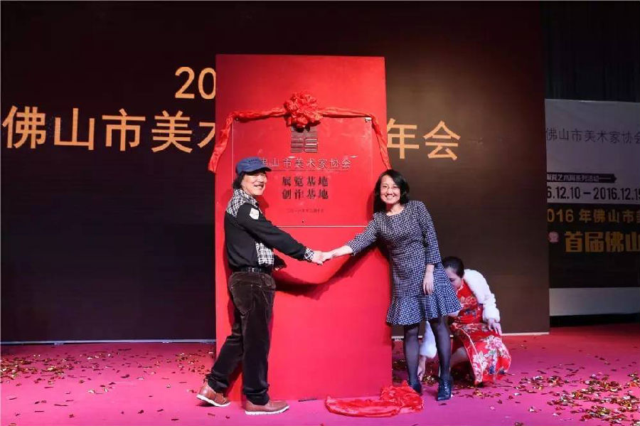佛山市美術(shù)家協(xié)會展覽基地、創(chuàng)作基地揭牌儀式嘉賓:佛山美協(xié)主席鐘汝榮、南風(fēng)古灶總經(jīng)理張瀅女士