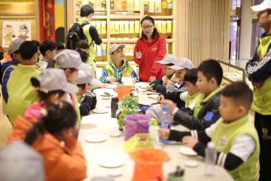隨后,小朋友們來(lái)到故宮兒童體驗(yàn)館,跟著講解員“穿越”歷史,了解故宮的前世今生。而后,孩子們拿起畫(huà)筆,在白瓷盤(pán)上描繪心中最美的圖案,將其變?yōu)楠?dú)一無(wú)二的藝術(shù)品。