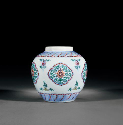 清雍正 仿成化斗彩開光折枝蓮紋罐 成交價(jià):RMB 345,000