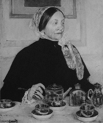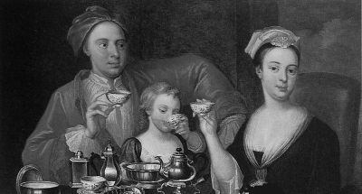 《喝茶的一家人》畫中人使用中國瓷器。資料圖片