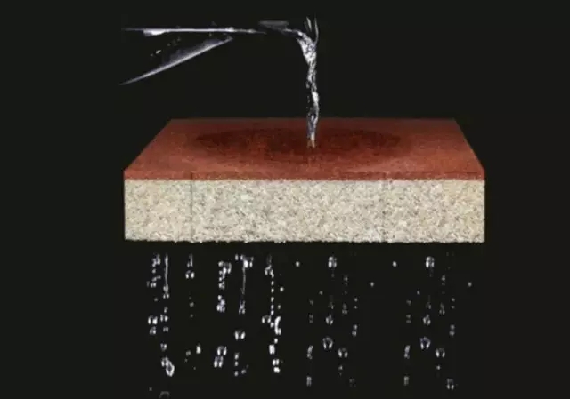 ▲透水磚(右)與常規(guī)磚(左)濕水之后的滲透速度有明顯差異。