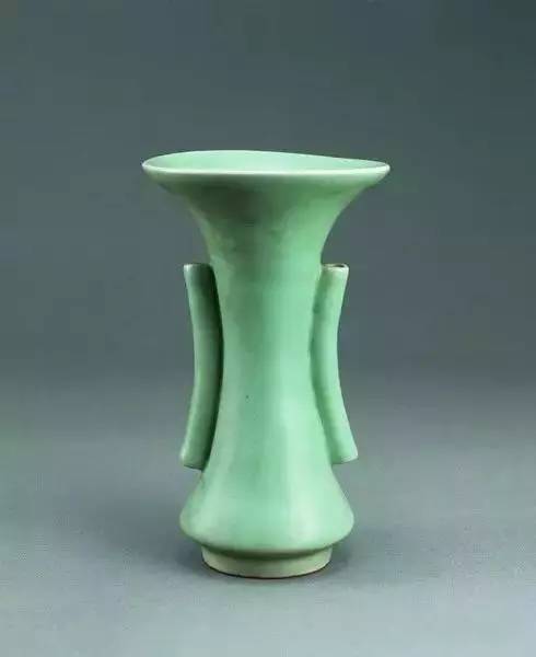 宋 粉清釉龍泉窯雙耳廣口瓶