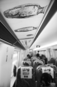 這列醴陵陶瓷城鐵專列,車門、行李架、車窗上都充滿陶瓷元素,其中車窗和行李架上還貼有精美的瓷器。車廂內(nèi)提示:2017中國(醴陵)國際陶瓷產(chǎn)業(yè)博覽會將于9月28日-30日在株洲醴陵舉行。這列城際鐵路列車將一直運(yùn)行到10月7日。
