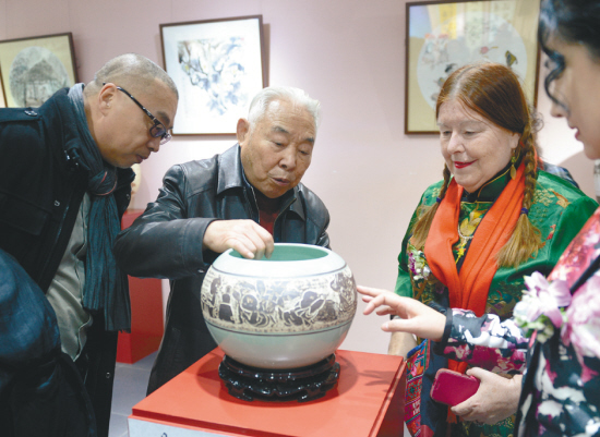11月11日,由沈陽滿族畫院聯(lián)手遼寧省龍呈文化創(chuàng)意產(chǎn)業(yè)園共同主辦的——首屆遼瓷書畫藝術(shù)展在沈陽日報美術(shù)館舉行。本次展出的100多件遼瓷是沈陽滿族畫院畫家們將繪畫、雕刻、剪紙等滿族文化元素與遼瓷藝術(shù)相融合的藝術(shù)品。