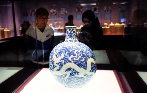 明宣德款青花云龍紋大瓶,是官窯精品。信息時報記者 徐敏 攝