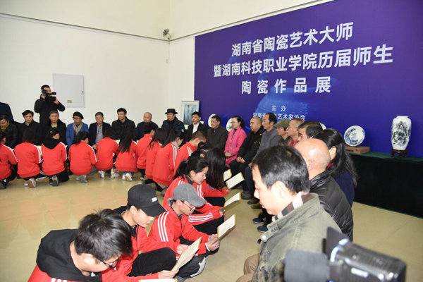 本報12月17日訊 當你崇拜的業(yè)界大腕突然來到你的身邊,成為你的老師,這會是一種怎樣的體驗?昨日,湖南科技職業(yè)學院舉行陶瓷藝術(shù)大師結(jié)對收徒儀式,我省40位陶瓷技藝國家級、省級傳承人與該校陶瓷設(shè)計專業(yè)40名學生“一對一”結(jié)為師徒,與此同時,5位國家級陶藝大師還獲聘成為該校特聘教授。大師們將通過“現(xiàn)代學徒制”模式,將自己的技能專長,傳授給校園里的“徒弟”。