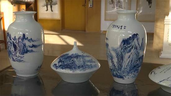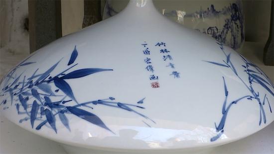 這批青花瓷器是采用景德鎮(zhèn)手工制瓷工藝,并由多位書(shū)畫(huà)家和企業(yè)名流等提供書(shū)畫(huà)藍(lán)本燒制而成。圖案有山水、花鳥(niǎo),各具其妙,瓷胎潔白,瓷釉透明,古色古香,頗具韻味。傳統(tǒng)的燒瓷工藝與傳統(tǒng)書(shū)畫(huà)藝術(shù)的完美結(jié)合,凸顯出傳統(tǒng)文化的豐富內(nèi)涵。