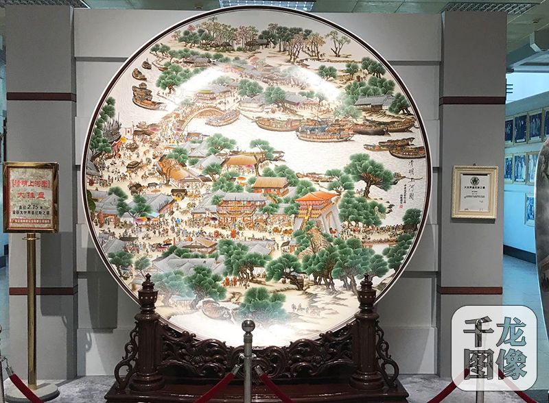 潮州中國瓷都陳列館館是廣東省內(nèi)規(guī)模最大、數(shù)量最多、品種最全、檔次最高的陶瓷專業(yè)展館。圖為《清明上河圖》大掛盤。千龍網(wǎng)記者 查甜甜攝