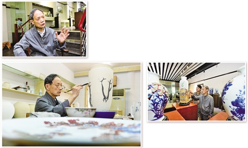 、 徐慶庚正在闡述對(duì)粉瓷工藝的藝術(shù)認(rèn)識(shí)。
