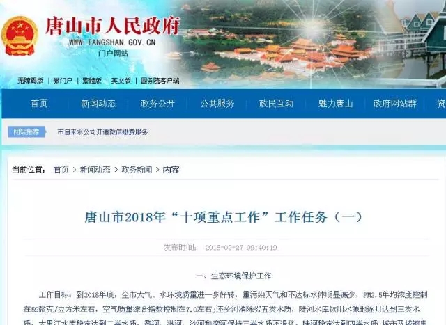 ▲唐山市將生態(tài)環(huán)境保護(hù)工作作為2018年的工作重心。