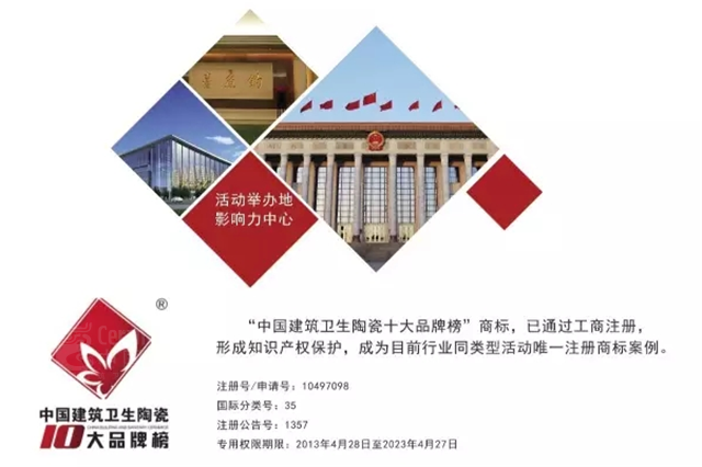中國建筑衛(wèi)生陶瓷十大品牌榜評選活動,作為目前行業(yè)同類型活動唯一注冊商標(biāo)、享有陶瓷行業(yè)“百花獎”美譽的案例,不僅開創(chuàng)了行業(yè)先河,還為陶瓷衛(wèi)浴品牌構(gòu)建了一個更權(quán)威、更高端、更優(yōu)秀的展示平臺,為品牌營銷贏得先機。