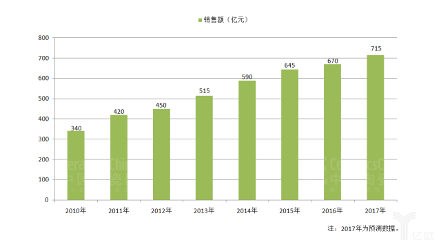 2010~2017年國內(nèi)衛(wèi)生陶瓷制品銷售額