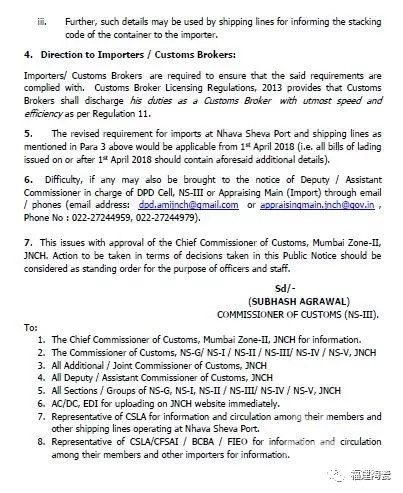 按印度海關(guān)最新要求,所有出口至印度港口的貨物(含印度內(nèi)陸港),提單和艙單必須顯示以下信息: