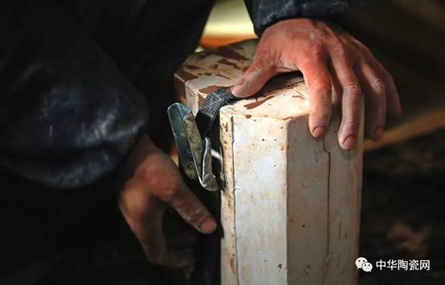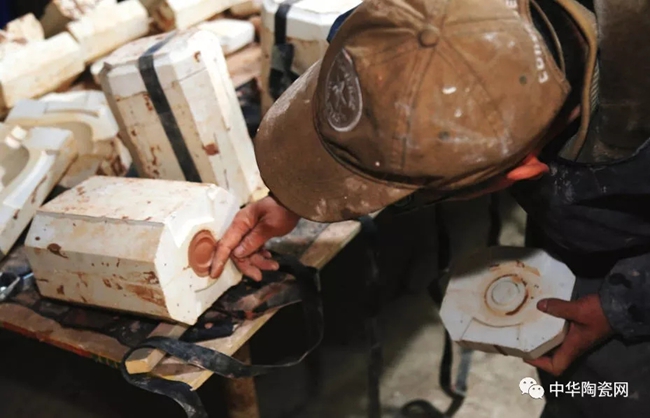 于樂土說,官瓷作品當時作為國儀之用的禮器,依據(jù)三代青銅器和玉器造型,有四個“非常”——第一個非常,皇家壟斷,成就高,收藏范圍;第二個非常,誕生時機不巧,趕上金人入侵,燒造不足20年,存世量;第三個非常,器形合乎法度,禮器全有出處,不能用不可控的手工拉坯,必須精制模具;第四個非常,風格厚重,工藝復(fù)雜,需要多遍施釉。圖為脫模