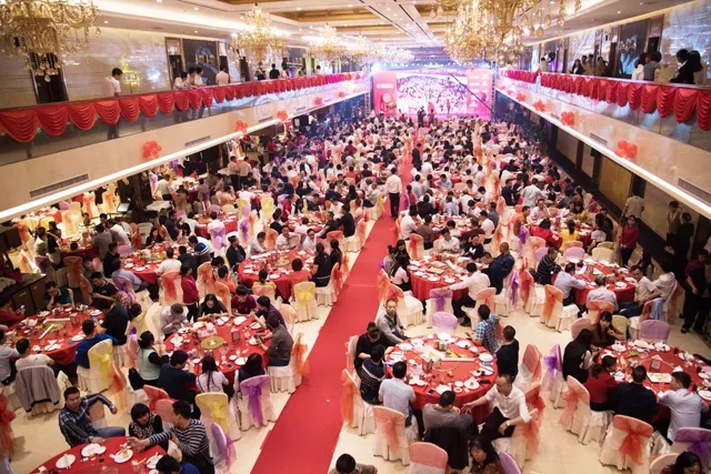 ▲祥達(dá)企業(yè)13周年慶典現(xiàn)場(chǎng)。據(jù)悉,祥達(dá)企業(yè)包了紅樹林大酒店一樓宴會(huì)廳和二樓所有包間。