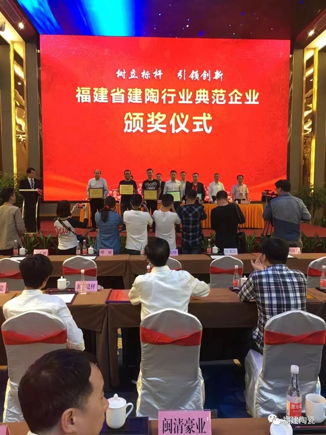 宏華集團(tuán)、聯(lián)興建材、安泰建材、協(xié)隆陶瓷、丹豪陶瓷、晉成陶瓷、碧圣建材、萬利瓷業(yè)、建華陶瓷、銘盛陶瓷、豪業(yè)陶瓷、協(xié)進(jìn)建材、寶達(dá)建材、彩霸陶瓷等14家企業(yè)獲得“2017年度福建省建陶行業(yè)轉(zhuǎn)型升級標(biāo)桿企業(yè)”稱號。