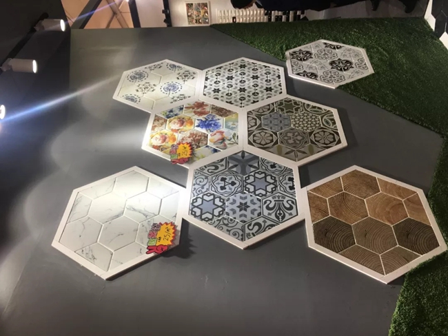 記者看到,德順陶瓷展位主要是地面磚,產(chǎn)品種類豐富,有六角磚、小花磚、歐式文藝花磚、現(xiàn)代仿古磚、幾何花磚等等,主要產(chǎn)品70%以上出口到世界各個國家,是一家以出口為導(dǎo)向型的企業(yè)。