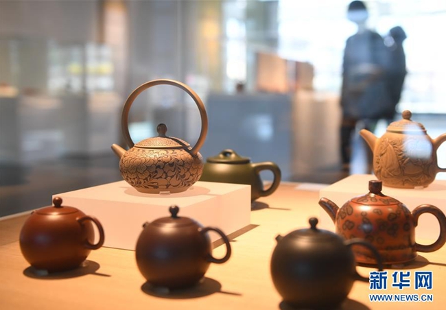 這是3月31日在鶯歌陶瓷博物館拍攝的宜興紫砂壺。鶯歌古鎮(zhèn)位于臺灣新北市,當?shù)卦O(shè)有陶瓷博物館、陶瓷主題公園和陶瓷老街等,有“臺灣景德鎮(zhèn)”之譽,是感受陶瓷文化的好去處。新華社記者林善傳攝