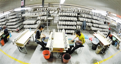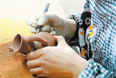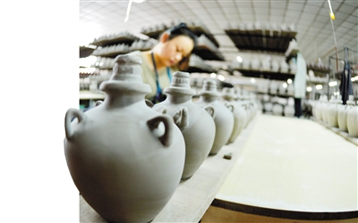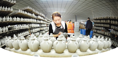 近日,在武威市夏王陶瓷工藝制品有限公司,工人們制作西夏瓷器風(fēng)格酒瓶配件。甘肅武威曾是西夏的輔郡,當(dāng)?shù)爻鐾恋奈飨拇善骷拔飨谋绕魑,以其深厚的文化沉淀見證了西夏文化的輝煌。