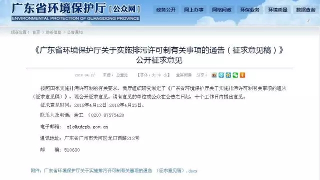 今日,廣東省環(huán)保廳下發(fā)了《廣東省環(huán)境保護(hù)廳關(guān)于實(shí)施排污許可制有關(guān)事項(xiàng)的通告(征求意見稿)》。