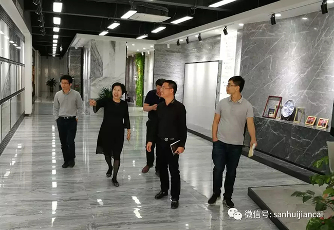 蘇副局長一行在楊寶貴副董事長的陪同下參觀了新展廳,對協(xié)進(jìn)研發(fā)生產(chǎn)的一系列大規(guī)格薄板、大板、外墻保溫復(fù)合一體板等綠色節(jié)能新產(chǎn)品贊賞有加;隨后深入生產(chǎn)車間和技術(shù)研發(fā)中心檢查企業(yè)創(chuàng)新研發(fā)工作的開展情況,鼓勵(lì)企業(yè)持續(xù)創(chuàng)新發(fā)展,開拓新市場,再創(chuàng)新佳績。