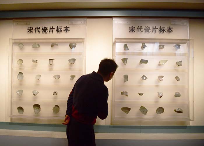 2月26日,在位于耀瓷小鎮(zhèn)內(nèi)的耀州窯遺址內(nèi),一名游客在參觀宋代瓷片標(biāo)本。 新華社記者邵瑞 攝