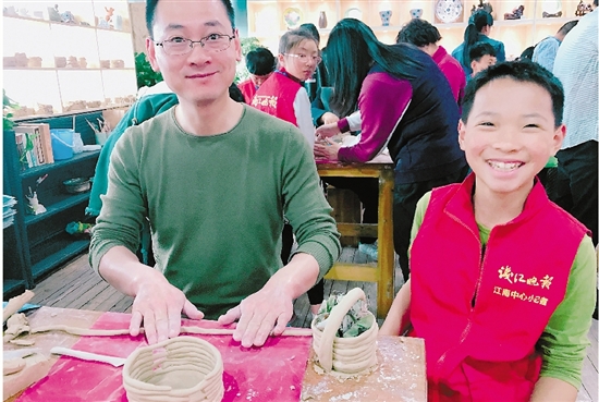 擺在我們面前的有好多胚模,分給各個小記者們,做法也有很多種,有手工制作的也有機制的,老師今天教小記者們一種“搓條法”的花瓶制作,然后陶泥在小朋友手里開始慢慢地搓成條狀,圍在事先印好的圖形上,越疊越高,形成一個花瓶,這就是“搓條法”,然后給我整形,刻花,上釉,這幾個步驟給我打扮完成后他們狠心把我放進了1150℃的燒爐里歷練了10多個小時,我從一個丑小鴨飛升變成了白天鵝,打開爐門的一剎那我迫不及待地完美綻放了我自己。小記者們在老師的幫助下看到自己的作品感到非常驚艷,而我亦是靜悄悄地在那里釋放屬于我自己的那份美,以及中華五千年的悠悠歷史文化沉淀!
