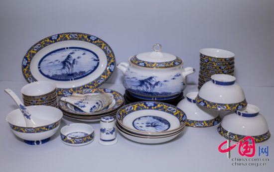崀山主題骨瓷釉下藍彩——八角寨餐具*陶瓷藝術*國畫大師徐建章作品