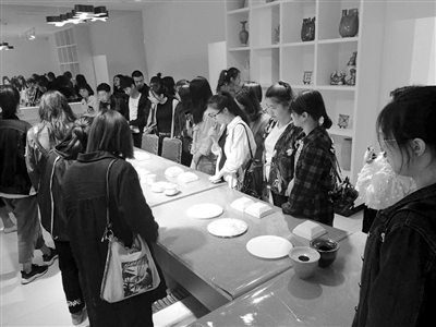 此外,大學生們不僅參觀了園區(qū)內(nèi)一體化生產(chǎn)車間,還在專業(yè)高級技師的指導下,學習陶瓷的制作工藝流程,并動手進行拉坯、印泥實踐。學生們還在自己的作品中,融入對遼瓷文化的了解,詮釋自己的創(chuàng)意靈感。