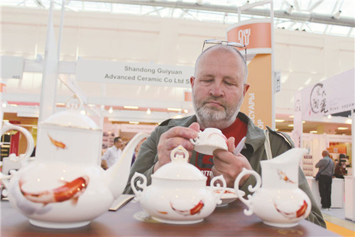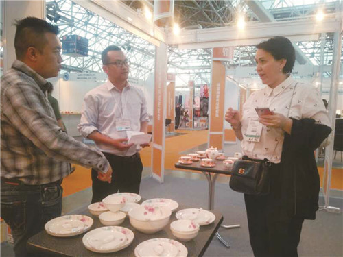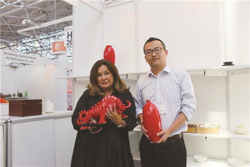 開幕式當(dāng)天,記者在現(xiàn)場看到,淄博陶琉展區(qū)人頭攢動,莫斯科市民、經(jīng)銷商在這里流連忘返,對淄博陶瓷的美輪美奐不時發(fā)出驚嘆。據(jù)了解,在山東省陶瓷協(xié)會、淄博市陶瓷行業(yè)協(xié)會的組織下,華光陶瓷、硅元瓷器、泰山瓷業(yè)都是連續(xù)三次參加中國消費(fèi)品(俄羅斯)品牌展,在2016、2017參展的基礎(chǔ)上,2018年展會他們都針對俄羅斯市場做了充分的準(zhǔn)備,從造型設(shè)計、色彩選擇、消費(fèi)習(xí)慣等方面,推出了一批陶琉精品,受到俄羅斯市民和經(jīng)銷商的青睞。當(dāng)天上午,一位俄羅斯女士就像熟悉的老朋友徑直走進(jìn)淄博陶琉展區(qū),當(dāng)即選購了華光陶瓷出品的一套富貴牡丹餐具,一套流金歲月餐具。付款打包,沒用10分鐘。據(jù)了解,這位女士在去年的展會上,就對華光陶瓷愛不釋手,曾選購過一套牡丹餐具。今年聽說華光陶瓷來參展,她又第一時間趕來選購自己心儀的產(chǎn)品。華光陶瓷設(shè)計研發(fā)的福魚賀歲咖啡具也備受俄羅斯消費(fèi)者歡迎,不到一上午的時間就已售罄。硅元瓷器此次展會推出了包括日用瓷、藝術(shù)瓷共二十幾個品類,國瓷國禮國范,中國元素中國特色,充分展現(xiàn)了“淄博陶瓷當(dāng)代國窯”風(fēng)采,深受俄羅斯消費(fèi)者的喜愛。莫斯科紅寶石展覽中心副總經(jīng)理阿麗娜女士一眼就相中了硅元瓷器的產(chǎn)品,她一次就購進(jìn)了“紅牛”雕塑和“怡然”花瓶兩件。泰山瓷業(yè)此次展會帶來了一批擁有國家發(fā)明專利的水晶瓷、水晶骨瓷、水晶玉瓷陶瓷精品,晶瑩剔透,溫潤如玉,在展會上一亮相,就引來無數(shù)贊賞的目光。剛剛斬獲2018中國旅游商品大賽金獎的金祥琉璃是第一次參加中國消費(fèi)品(俄羅斯)品牌展,沒想到,消費(fèi)者的接受度很高,他們對琉璃的歷史、制作工藝充滿了好奇。此次嘗試,讓金祥琉璃對開拓俄羅斯市場更加充滿了信心。