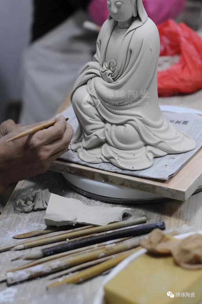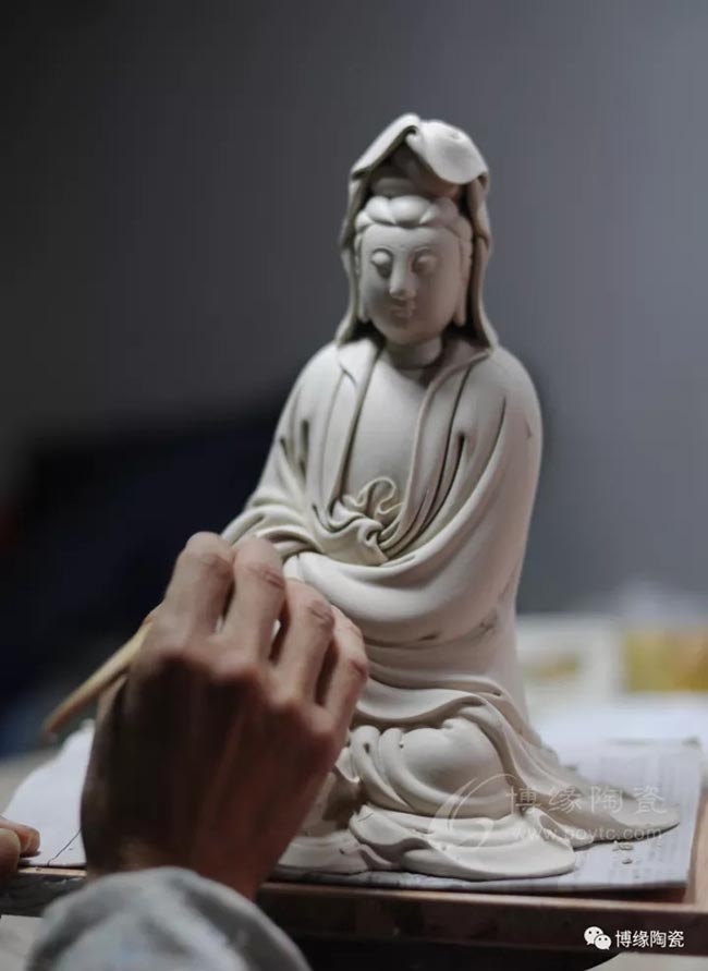 何派觀音雕塑注重于細(xì)節(jié)之美,精益求精,故而十分著意衣紋的刻畫,使線條流暢,翻轉(zhuǎn)自然。觀其佛像,仿佛有春風(fēng)拂面,衣袂飄揚(yáng)的出塵之感。而今德化陶瓷觀音作品,在繼承前人優(yōu)秀技法和何派風(fēng)格的同時(shí),不斷創(chuàng)新發(fā)展,賦予作品新的現(xiàn)代生活氣息,使作品更加貼近生活。