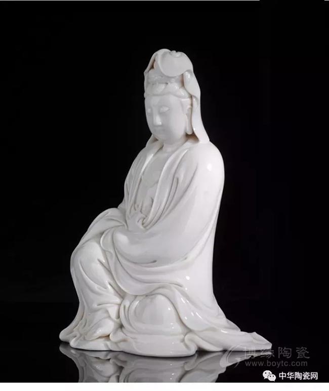 何朝宗善于繼承吸收泥塑,木雕,石刻等其它各種相關(guān)藝術(shù)的創(chuàng)作手法,并結(jié)合到自己的藝術(shù)創(chuàng)作中,既師古而不泥古,總結(jié)出了捏、塑、雕、鏤、貼、接、推、修的八字技法,形成了獨(dú)樹一幟的“何派藝術(shù)”,其中《披坐觀音》是“瓷圣”何朝宗觀音作品中的一款經(jīng)典之作。