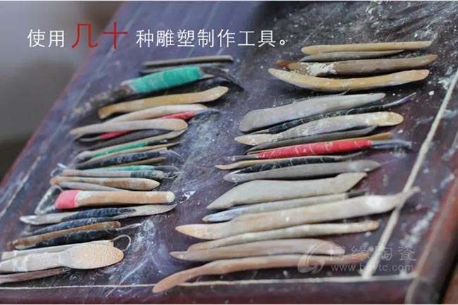作品純手工制作,經(jīng)堆,捏,雕,塑,刻等,過程使用幾十種制作工具。
