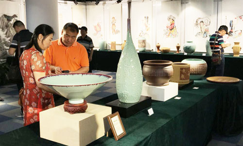 圖為宜興刀筆陶瓷藝術展上海站展廳現場