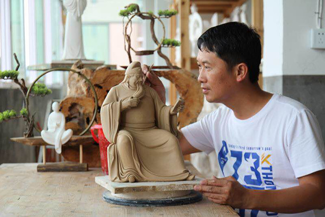 陳建陽(yáng)所塑作品注重于細(xì)節(jié)之美,精益求精,故而十分著意衣紋的刻畫,使線條清晰,流暢,翻轉(zhuǎn)自然,格調(diào)高雅、肅穆大方、形態(tài)逼真、工藝精細(xì)。