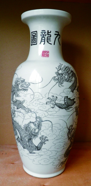 1964年,朱友麟去世,茅子芳這個“編外徒弟”無法再行請教,只好走上了“修行靠個人”的路,在繼承傳統(tǒng)刻瓷技藝的基礎(chǔ)上,吸收了素描、刺繡、金石、攝影等藝術(shù)風格,創(chuàng)出了具有自己獨特風格的刻瓷作品。“刻瓷就是在燒制好的瓷器上寫字作畫的一門技藝,是以刀代筆在瓷板、瓷瓶、瓷盤上,表現(xiàn)素描、線描、中國畫及書法的藝術(shù),它將繪畫與鏨刻結(jié)合,被譽為在瓷面上‘繡花’。”茅子芳說,傳統(tǒng)的刻瓷都是在白瓷上刻制,刻完以后再涂上顏色,但他另辟蹊徑,自上個世紀七十年代起首創(chuàng)深色釉瓷來刻制,“不用上色,光是根據(jù)不同的工具、刀法、疏密,就可以創(chuàng)造出至少五種色調(diào)的變化。”
