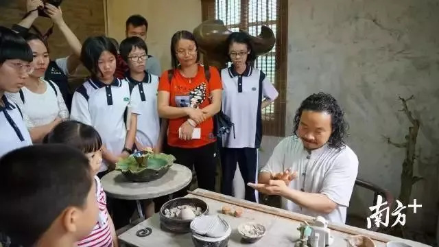 為了讓更多的人了解南山五彩釉,在三水區(qū)以及佛山市舉辦的各大文化活動(dòng)中,總能看見楊英才的身影。自2016年開始,他還在工作室開辦“新農(nóng)人陶藝夜校”,每周一、三、五晚免費(fèi)向周邊的陶藝愛好者傳授陶藝知識(shí)和技術(shù),指導(dǎo)他們制作屬于自己的陶藝作品,傳播南山五彩釉文化。