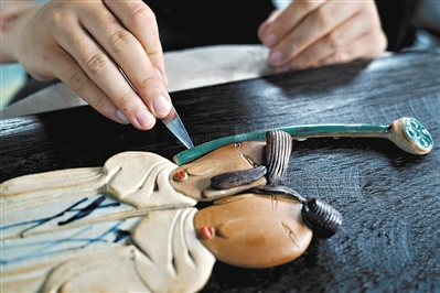 曾力告訴記者,從前的“石灣公仔”大多以動物形態(tài)或人形為創(chuàng)作靈感。但這種非遺級別的藝術品是否只能在博物館里供人欣賞呢?曾鵬表示不同意。“我們第一個轉變就必須從理念開始,打破傳統(tǒng)思維的限制,加入抽象思維和空間思維,把能讓更多人理解的藝術形象塑造出來。”曾鵬說,比如在徒手制作同一款人形陶藝時,直線與曲線的運用完全可以走現(xiàn)代設計的法則,“我們不需要100%復制出傳統(tǒng)的珍品,那些刻意營造的‘不完美’,其實才是現(xiàn)代人追求的‘不經(jīng)意’的藝術趣味。”(見圖一、二)