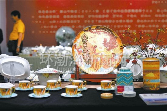 作品《重生》由設(shè)計(jì)師趙躍設(shè)計(jì)。作品中騰飛的鳳凰采用特殊工藝來實(shí)現(xiàn)其身體在順光與逆光情景中的光變效果;波光粼粼的湖水波紋在浮雕工藝中得以立體的展現(xiàn);點(diǎn)綴在整幅畫面中的亮金,在陽光的映射下閃耀奪目;產(chǎn)品各器型的金邊均通過精心處理,減少在日常使用中的磨損;為了能更好地延伸畫面的寓意,載體選用了世界公認(rèn)的高檔瓷種——唐山骨瓷。“看這道藍(lán)色條紋,設(shè)計(jì)靈感就來自咱唐山的環(huán)城水系。”高繼輝拿起一個(gè)咖啡杯介紹說。